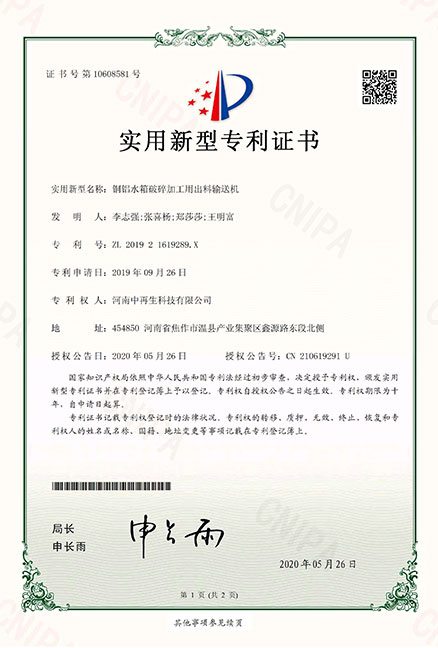 • ZL2019216192866銅鋁水箱破碎加工用振動給料機