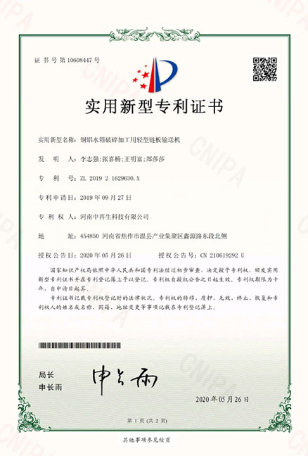 • ZL201921629630X_銅鋁水箱破碎加工用輕型鏈板輸送機