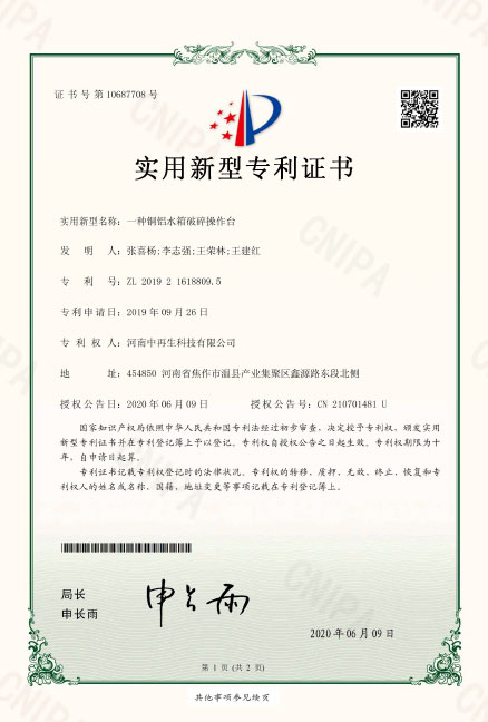 • ZL2019216188095.一種銅鋁水箱破碎操作臺