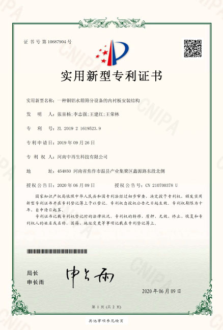 • 2019216195239.一種銅鋁水箱篩分設備的內襯板安裝結構